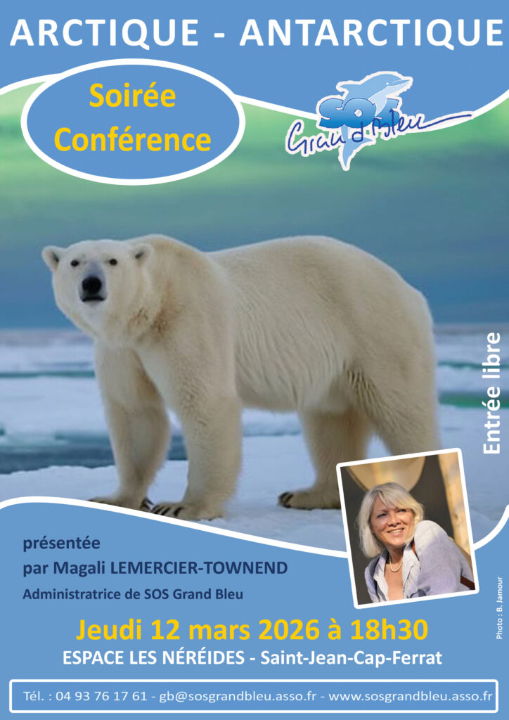 L’association SOS Grand Bleu vous propose sa prochaine soirée : « Arctique – Antarctique », présentée par Magali Lemercier-Townend, Administratrice de SOS Grand Bleu.